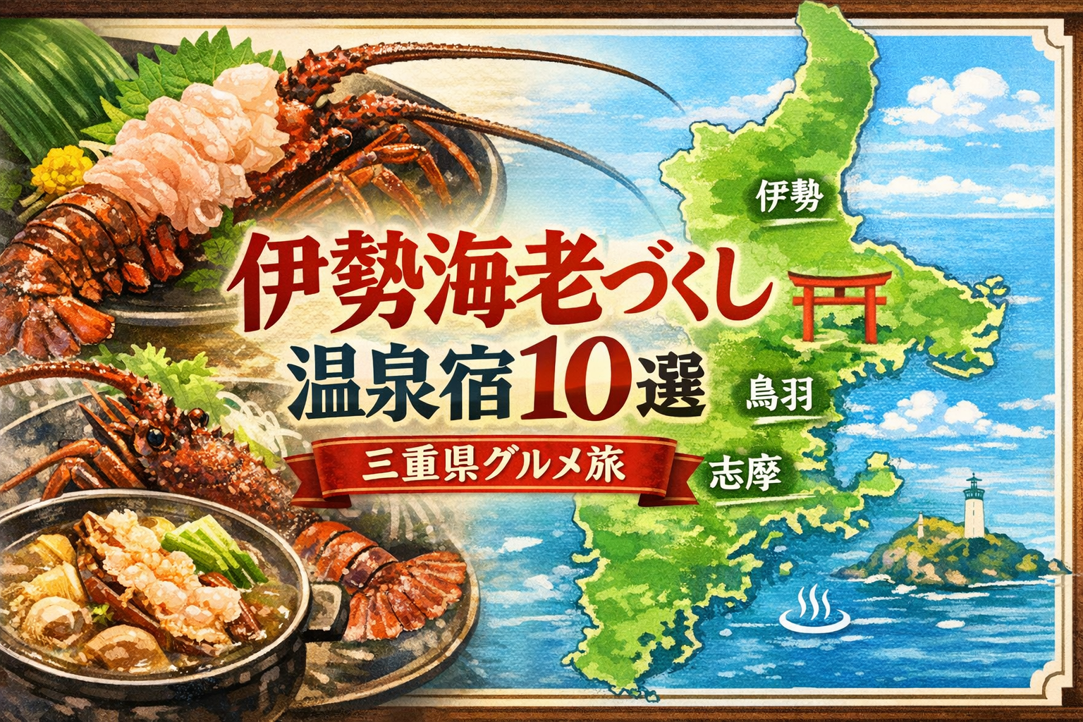 伊勢海老を目当てに旅をする——そんな贅沢が自然に叶うのが、三重県の温泉宿です。ぷりっとした身の甘みを堪能できるお刺身、香ばしさが際立つ焼き伊勢海老、旨みが溶け込む鍋や味噌汁まで。宿